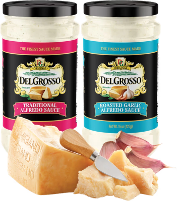 Discover the rich and creamy flavors of DelGrosso's new Traditional Alfredo and Roasted Garlic Alfredo Sauces, perfect for elevating your pasta dishes to gourmet levels.